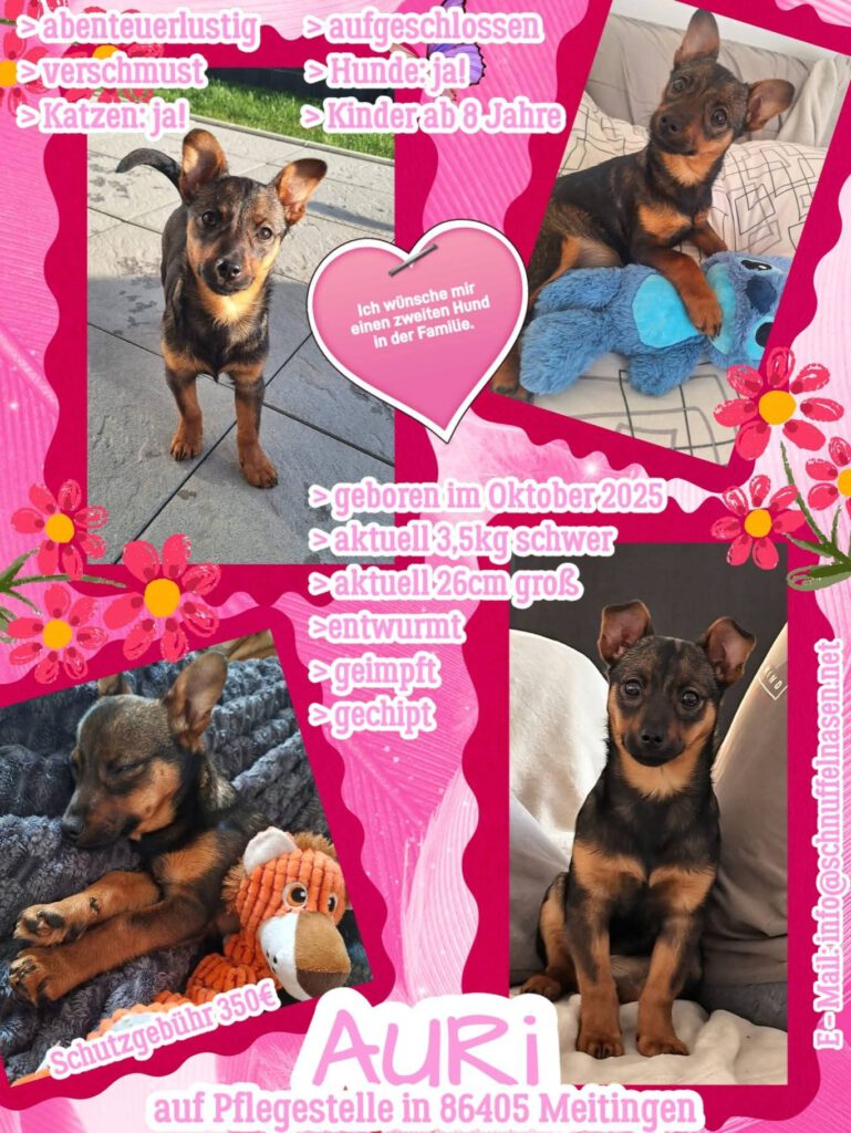 Auri ist im Oktober 2025 geboren, aktuell 3,5kg schwer und misst gerade eine Schulterhöhe von 26cm – auch ausgewachsen wird sie ein kleiner Hund bleiben.
