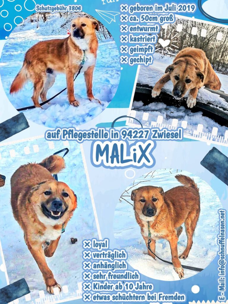 Für Malix wünschen wir uns eine liebevolle sowie konsequente Familie, die ihm die Welt zeigt und ihm eine gewisse Geduld entgegen bringt.