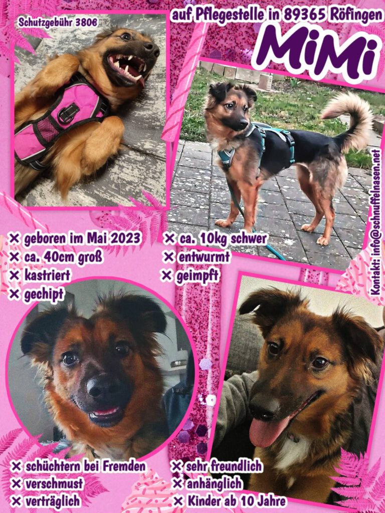 Für Mimi wird eine liebevolle, aber auch konsequente Familie gesucht, die Lust auf gemeinsame Abenteuer hat und sie mit Geduld durch ihre anfängliche Unsicherheit begleitet.