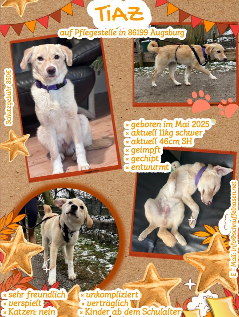 Wer Tiaz ein liebevolles Zuhause schenkt, bekommt einen treuen, sanften und herzensguten Begleiter fürs Leben, also komm zum Kennenlernen vorbei! 🐕